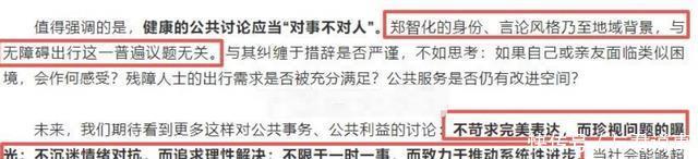 央媒点评直接抛出三个问题: 残障人士登机不便是不是真是存在?我们讨论的是问题本身还是在对人下判断? 公众人物要不要表达得完全无误?