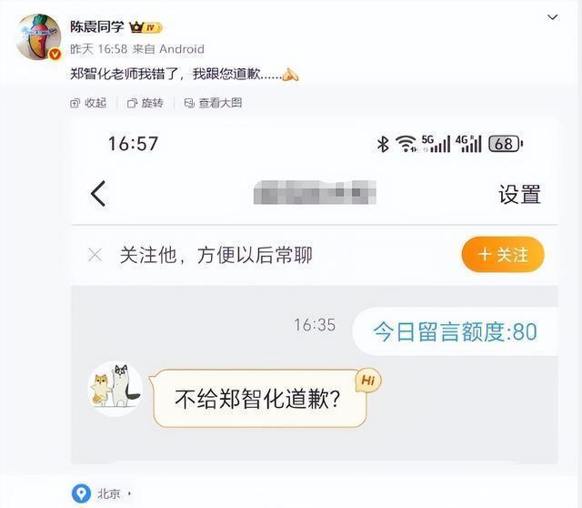 在事情结束之后,郑智化也履行了他在直播中说的:“把微博注销、退圈。” 也有的网友找到陈震,让他也和郑智化道歉。