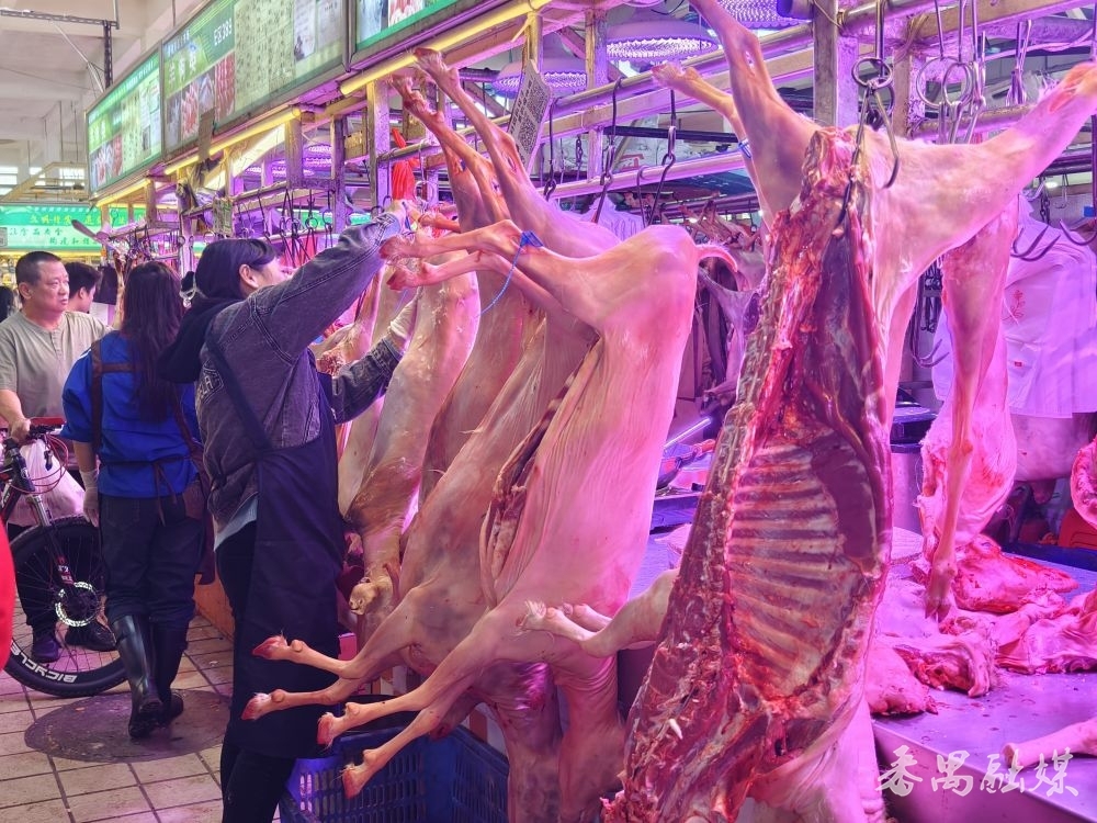 当天上午9时多,记者来到清河综合市场E区,这里有10多个羊肉档依次排开营业,每个档口都挂着好几头开了膛的羊肉,有的档口把分割好的羊排、羊腿、羊腩摆在案板上。有的档口前站着三四位街坊,一边打听价格,一边挑选自己看中的羊肉。档主们手起刀落,“哐哐”的剁肉声此起彼伏。无论是白山羊还是黑山羊的肉,都受街坊的追捧,有的街坊一次性买300多元的羊肉,买得少的也买了30多元的羊肉。