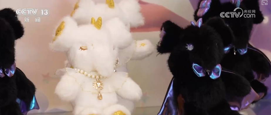 某潮玩公司外贸负责人吴巧媚介绍,这个产品是目前他们在海外市场销量最高的一个产品,把它跟中国《山海经》里的神兽“食梦貘”和中国非物质文化遗产“合香”技艺相结合,让它有毛绒的触感和香氛的嗅觉,打造一种双重治愈的玩偶。