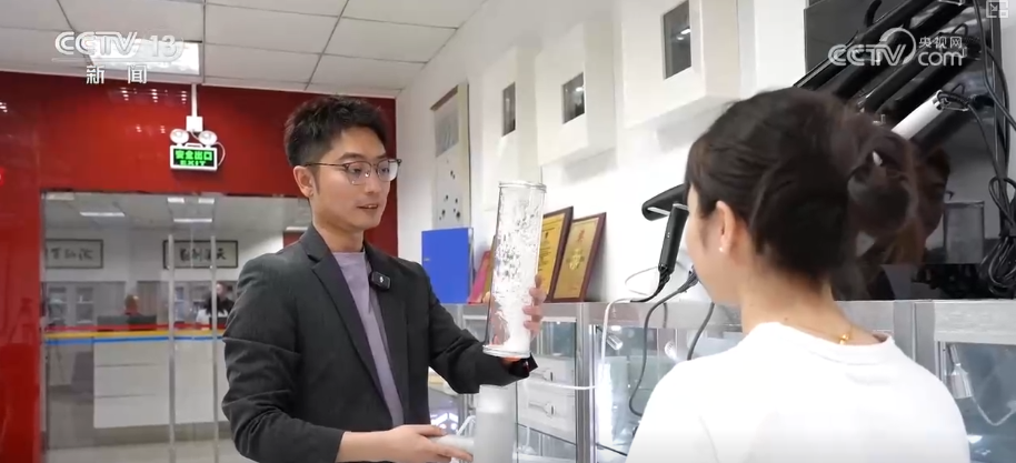 吴巧媚介绍,工艺品摆件、珠宝饰品、数字收藏品,还有餐饮、蛋糕甜品这一块,希望它能够应用到生活的方方面面。我们讲“文化自信”“文化出海”,文化要通过不同的载体去承载,希望通过毛绒玩具可以呈现、通过餐具可以呈现、通过衣服也可以呈现。