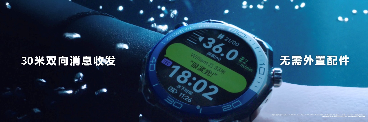 行业首创的水下独立通信功能——海豚通信,通过内置微型声呐装置实现手表间的消息传递,有效距离最远可达30米,其SOS求救功能的传播范围更是延伸至60米,为潜水者提供了关键的安全保障。作为首款支持北斗卫星语音消息的智能手表,该产品单次可发送最长10秒的语音消息,让用户即便身处无地面网络覆盖的极端环境,也能保持通信畅通。让用户在探索未知世界时,既能勇敢出发,也能安全回家。